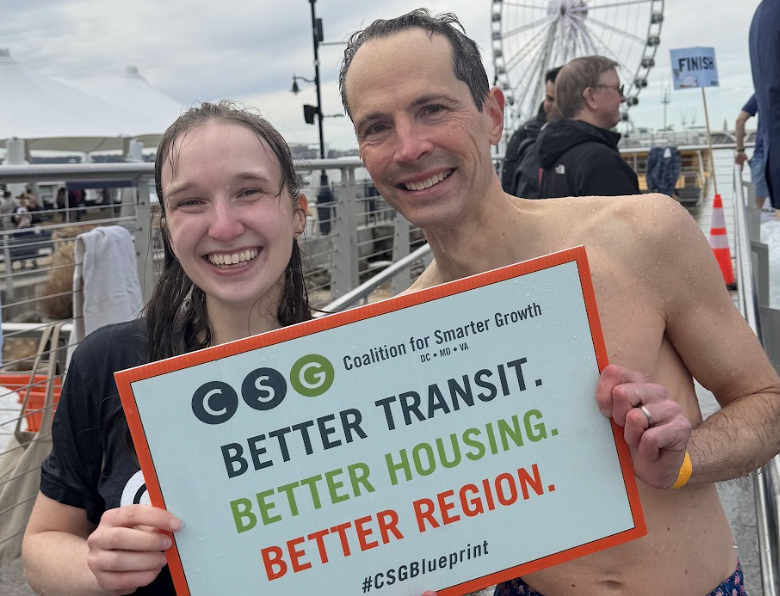 “Team Smarter Growth” got blasted by water cannons and buckets of ice water during Chesapeake Climate Action Network’s 21st annual Polar Bear Plunge, raising money for climate advocacy. CCAN held the event on the shore due to the Potomac River sewage spill – CSG signed on to a joint letter by Potomac Conservancy, highlighting the need for fix-it-first infrastructure policies.