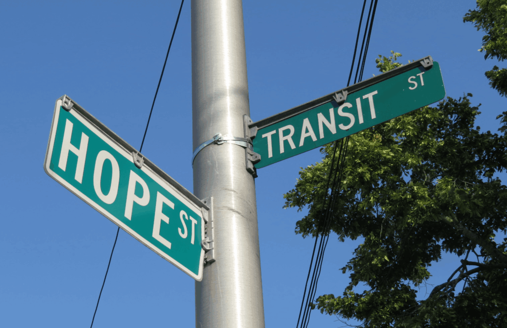 Intersection of Hope and Transit in Providence, RI. Photo by Carrie Kisicki